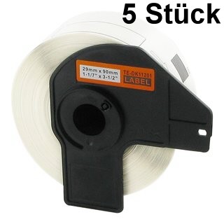 | 5 x kompatible Adressetiketten Brother (DK-11201), 29mm x 90mm, 400 Etiketten/Rolle, weiss, permanent |